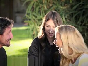 Französische Dame und eine Brünette werden von einem glücklichen Kerl gefickt
